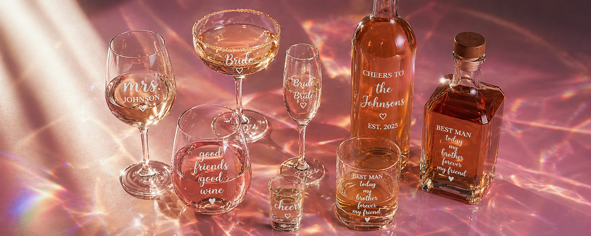 We specialize in personalized glassware, shadow boxes, and custom gifts — perfect for weddings, anniversaries, baby showers, birthdays, and other meaningful celebrations.